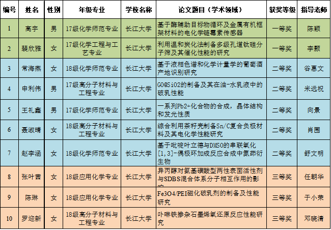 化工学子在省第十三届大学生化学(化工)学术创新成果报告会上喜获佳绩