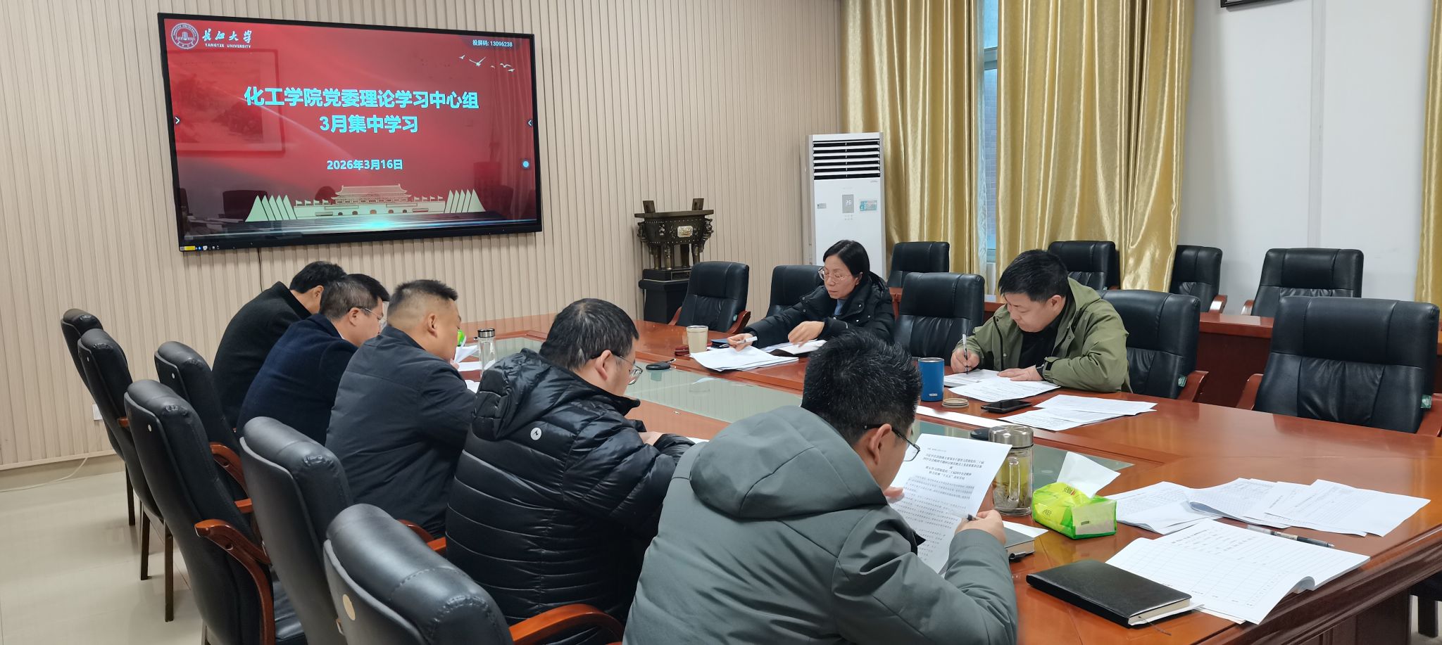 党委理论学习中心组在14教西303会议室举行2026年3月集体学习。会议由学院党委书记王丽主持,中心组全体成员参加。