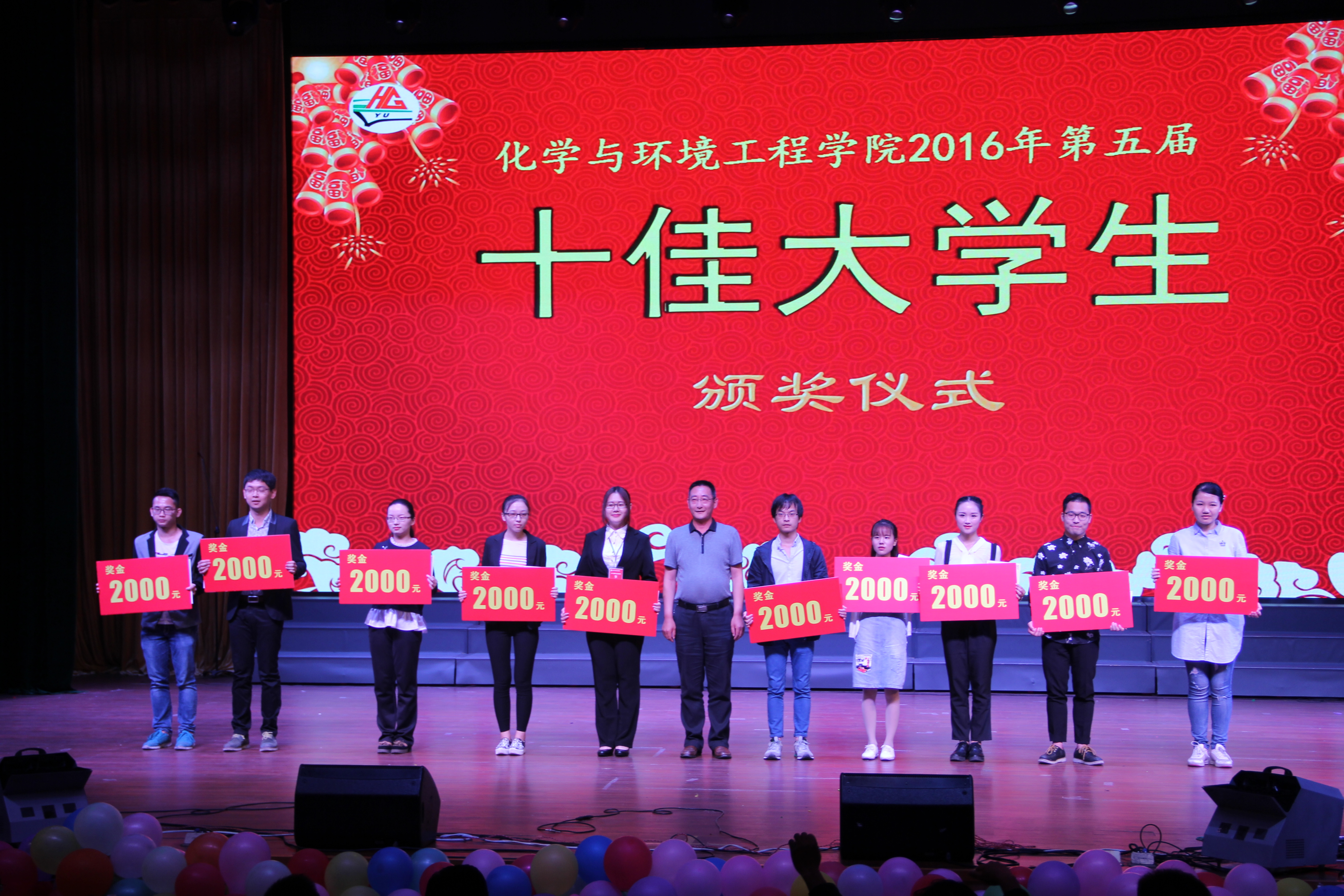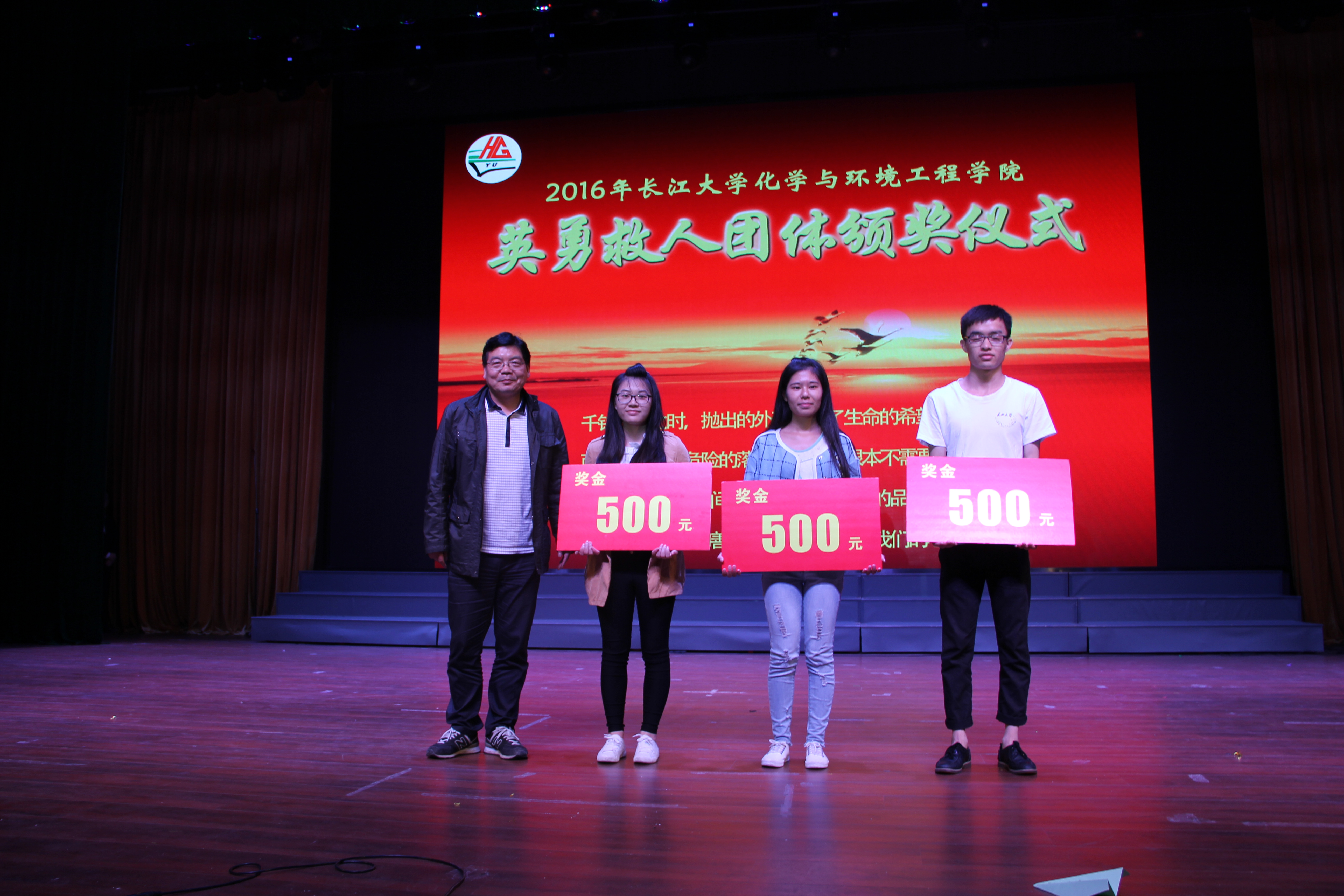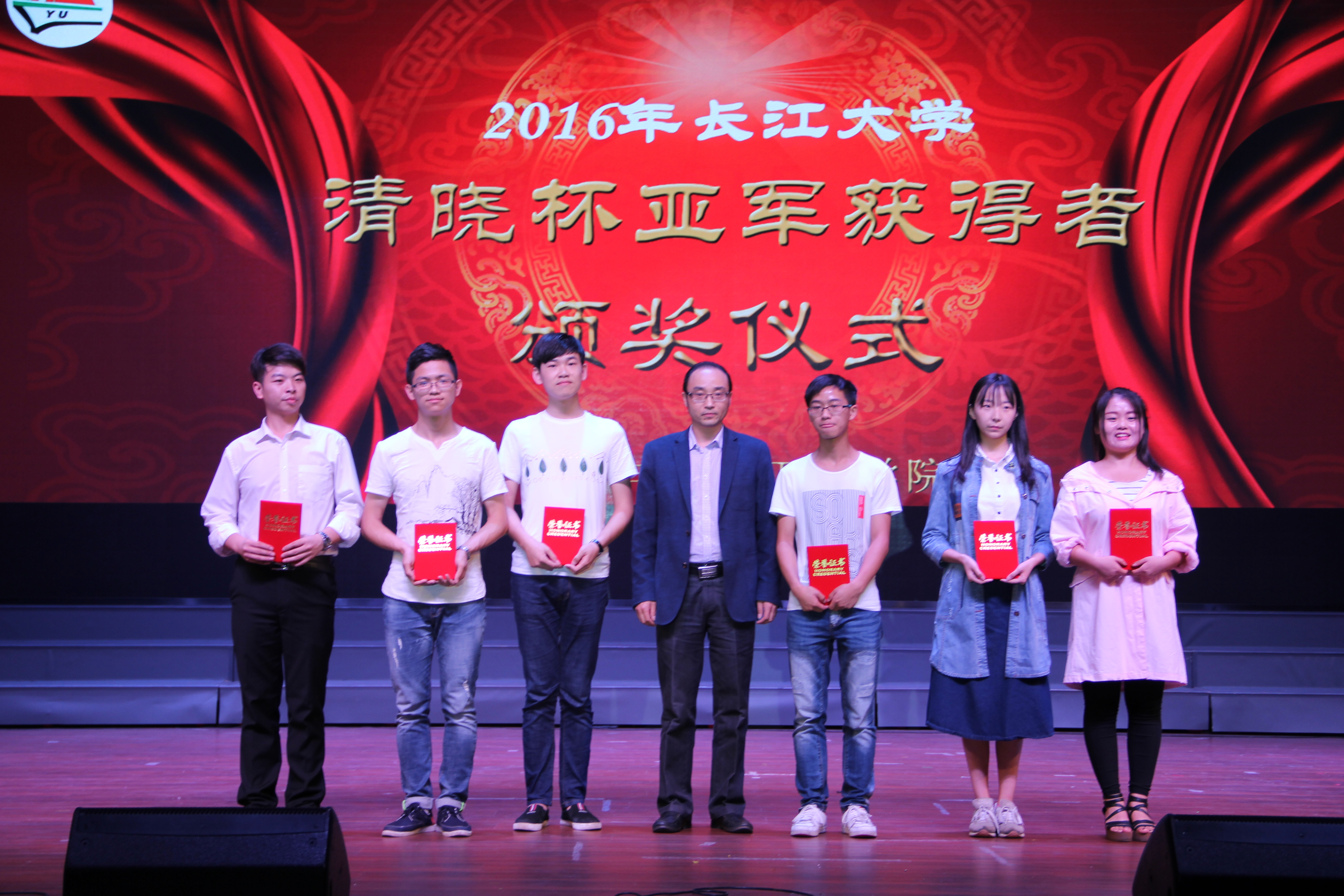 在晚会现场同时穿插进行了“学院第五届十佳大学生颁奖”、“学院2016年天门福临助学金颁奖”、“学院2016年考研就业优秀班级颁奖”、也为英勇救人团体和征战“清晓杯”荣获亚军的团体颁发了奖状和奖金。