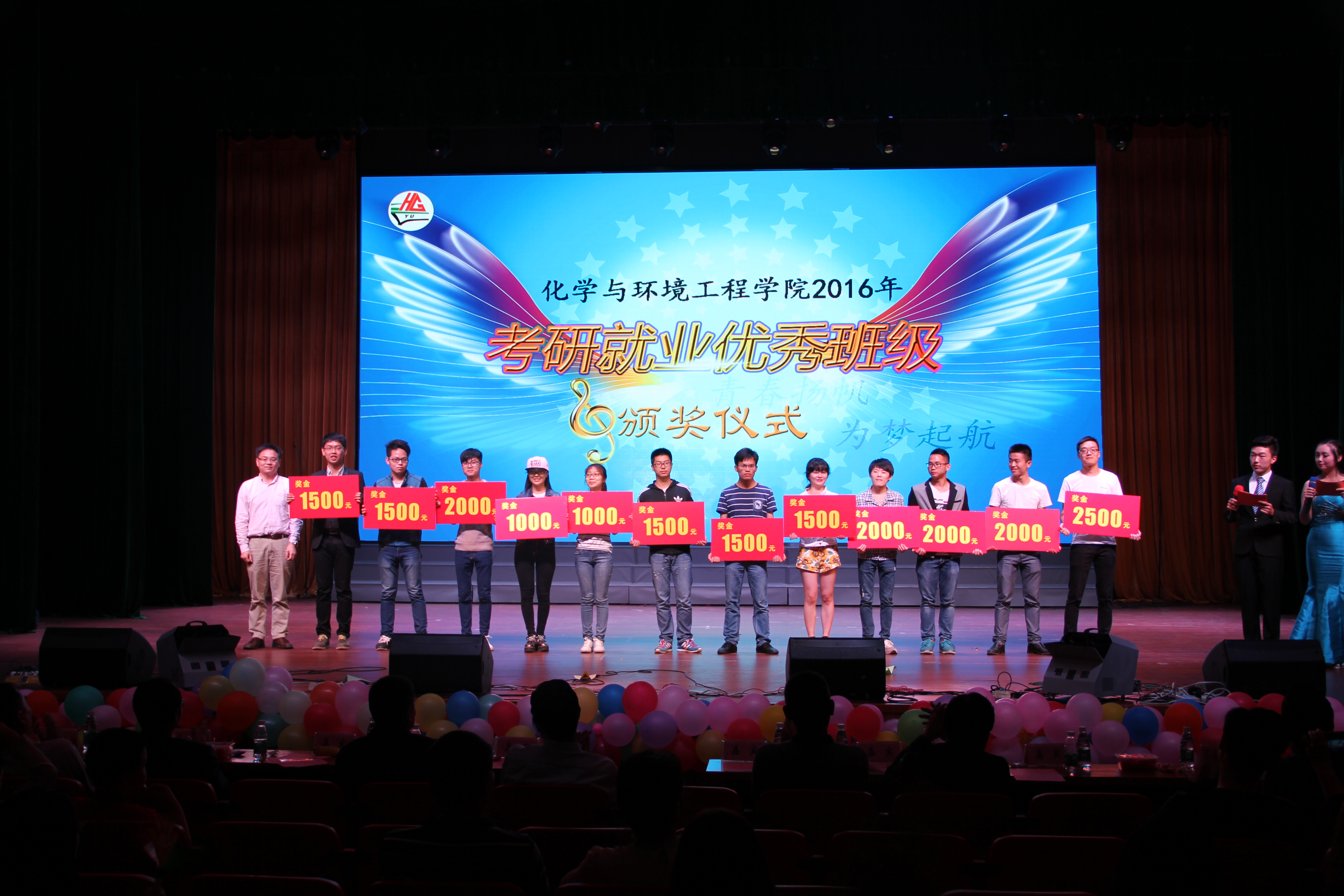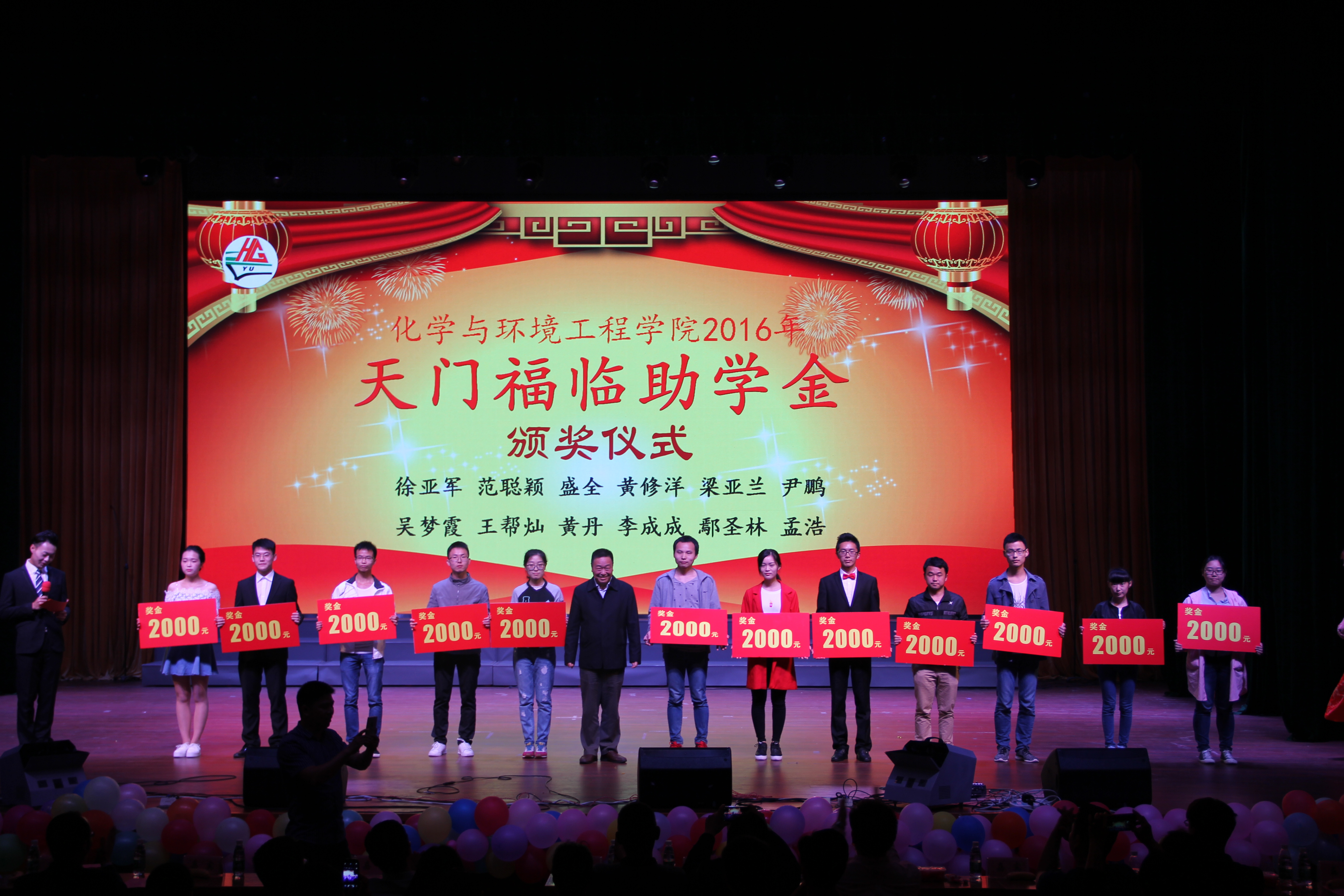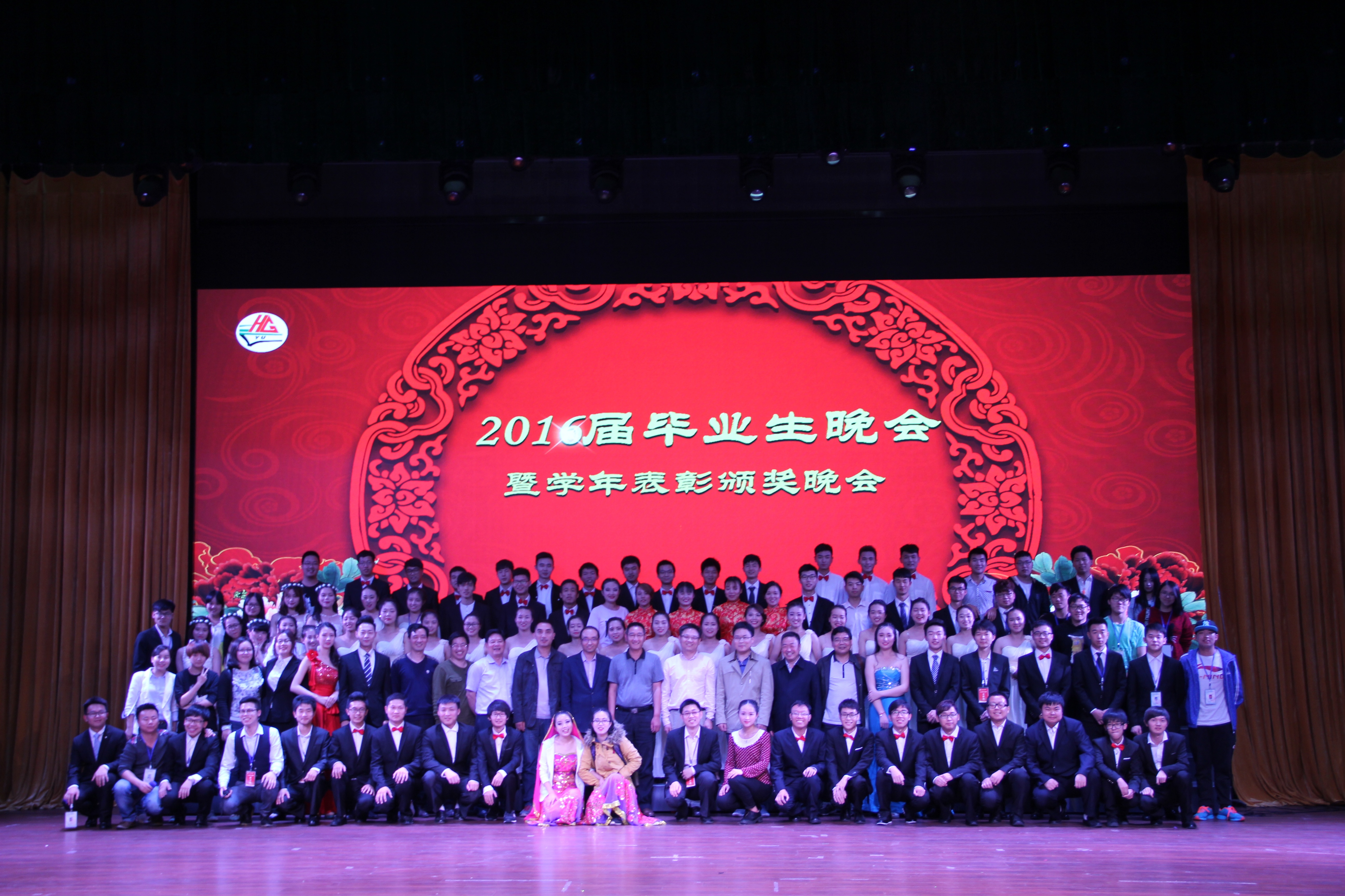 2016届毕业生晚会暨学年表彰颁奖典礼于东区大礼堂盛大开幕,学院邀请了湖北龙海化工有限公司胡从洋总经理和天门福临化工有限责任公司刘运成总经理莅临晚会现场,学院领导和教师代表也出席了晚会。