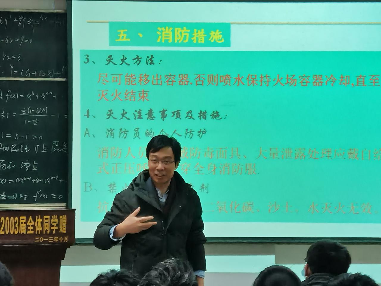 当日下午14:00,在14教北201教室,副院长黄河对学生进行了实验室安全教育,随后组织学生进行了火灾逃生演练。