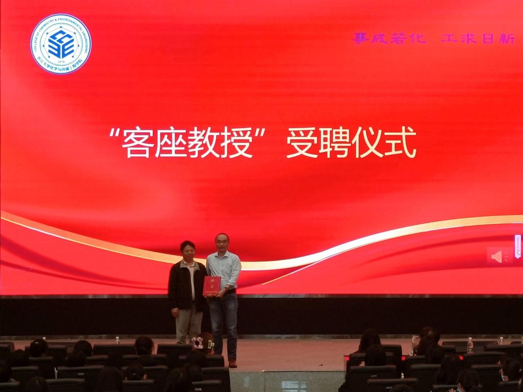 讲座伊始,颜学敏院长为陈烈权董事长颁发“客座教授”聘书。紧接着陈教授为学生们作《化工人的使命与担当》的报告。报告中陈教授介绍了化工行业的发展变化和目前形势,讲述了毕业后他如何投身化工行业,以他的人格魅力和聪明才智带领团队不断追求创新,在维生素、降压药等很多领域勤奋钻研,较短时间内将能特公司扭亏为盈,为国家经济建设和社会发展做出重大贡献的经历。他鼓励大家学习阶段要珍惜时光,学好专业知识,要学专、学深、学透;工作中要有迎难而上、刻苦钻研的精神,要不怕吃苦;生活中要有好的体魄,要加强体育锻炼,以十足的信心直面困难和挑战。