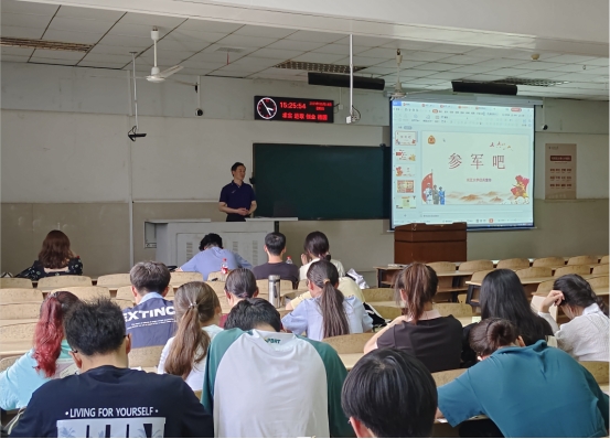 5月18日下午,探花做爱 在12教202开展2023年秋季征兵宣讲活动,全院学生通过线下或线上方式参加会议。