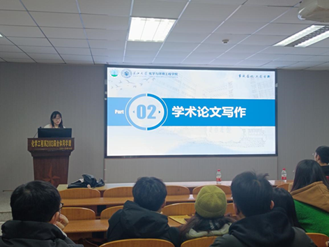 于14教北201举办2023年本科生学术论文写作培训会。本次培训由21级研究生申利伟、20级本科生张欣媛主讲,辅导员周学素老师和21级、22级部分同学到场参加。