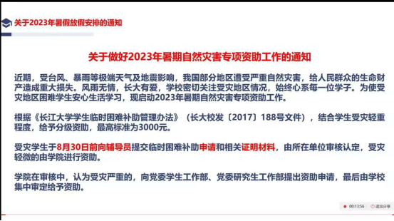 为使受灾地区困难学生安心生活学习,学院落实2023年暑期自然灾害专项资助工作,广泛宣传、加强精准资助,为受灾学生提供临时困难补助。