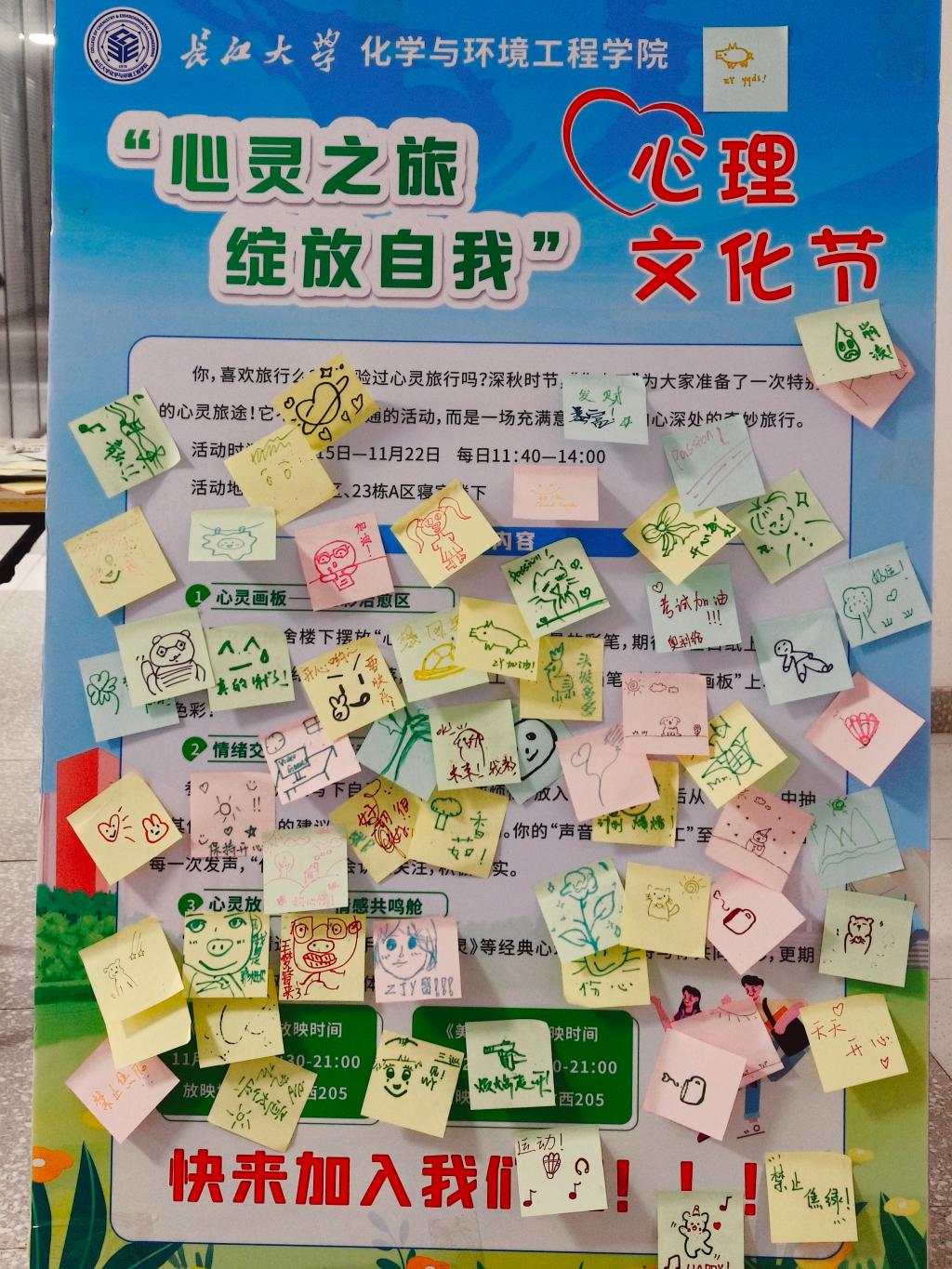 于11月15日至11月22日在10栋C区、23栋A区寝室楼下开展“心灵之旅,绽放自我”心理文化节活动。