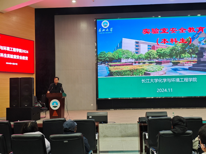 于11月27日晚上在西校区农科大楼1058号学术报告厅为2024级本科生开展了一场实验室安全教育讲座。此次讲座由院长助理、实验室中心主任黄河老师主讲,辅导员蔡略老师、2024级全体本科生参加了活动。