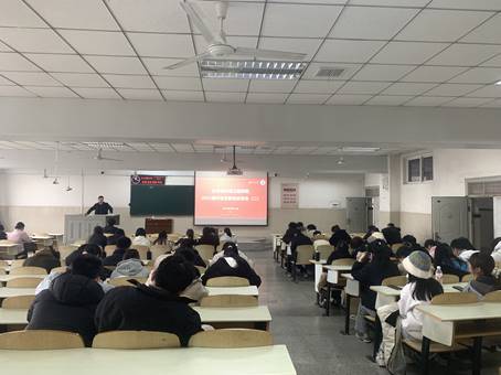 大会伊始,党委副书记杨会军发表讲话,他首先分析了当前的国内外经济形势和就业形势,号召同学们积极转变就业观念,树立“先就业、后择业”的务实观念。同时杨书记介绍了我院近三年学生二战的成绩,引导同学们要明确考研目的,谨慎选择 “二战”考研。除了考公考编、企业就业外,还可以根据自身情况积极选择应征入伍、创业和基层就业等方式,做好多手准备,尽早争取就业机会。最后,他介绍了学校为毕业生搭建的多元化就业平台,包括校园招聘会、校企合作项目、就业指导服务等,鼓励同学们以饱满的信心迎接职场挑战。