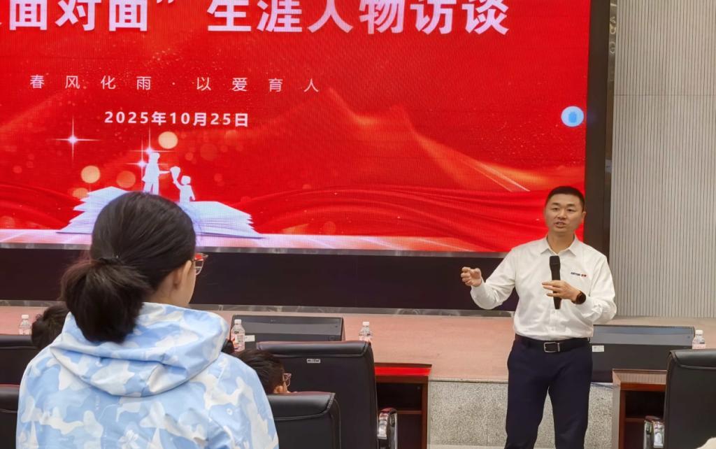 在“生涯人物访谈”互动环节,同学们踊跃提问,围绕“如何实现职业高阶发展”“研究生阶段如何提升综合竞争力”等话题展开交流。针对就业后的成长路径,邓勇强调持续学习与对标优秀人才的重要性;对于研究生阶段的发展规划,他建议积极参与企业合作项目,推动理论知识向实践能力转化,同时聚焦目标企业的业务方向,提前做好知识储备与能力布局。