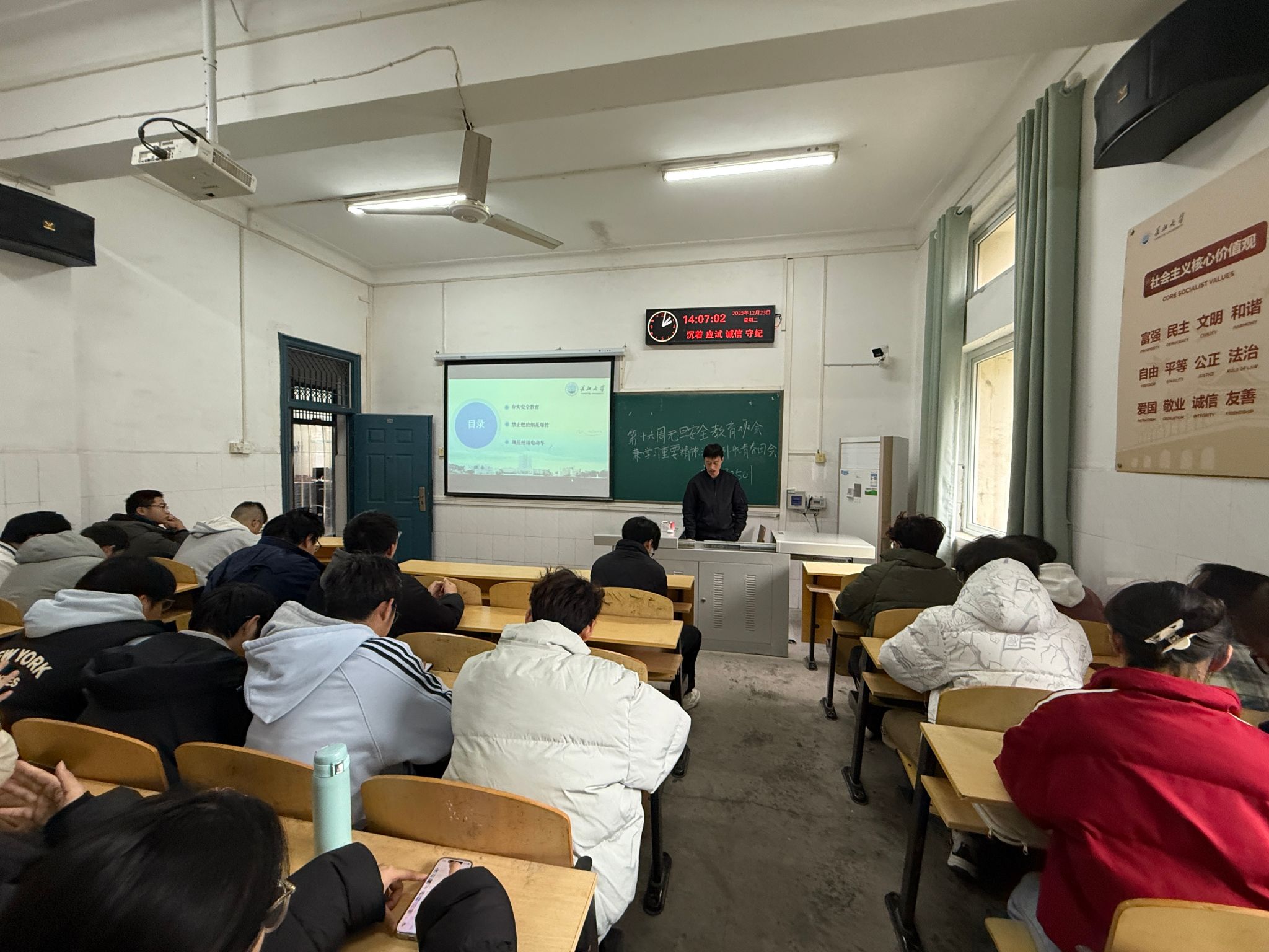 以班级为单位,组织本科生、研究生各班开展系列元旦前后安全教育主题班会。