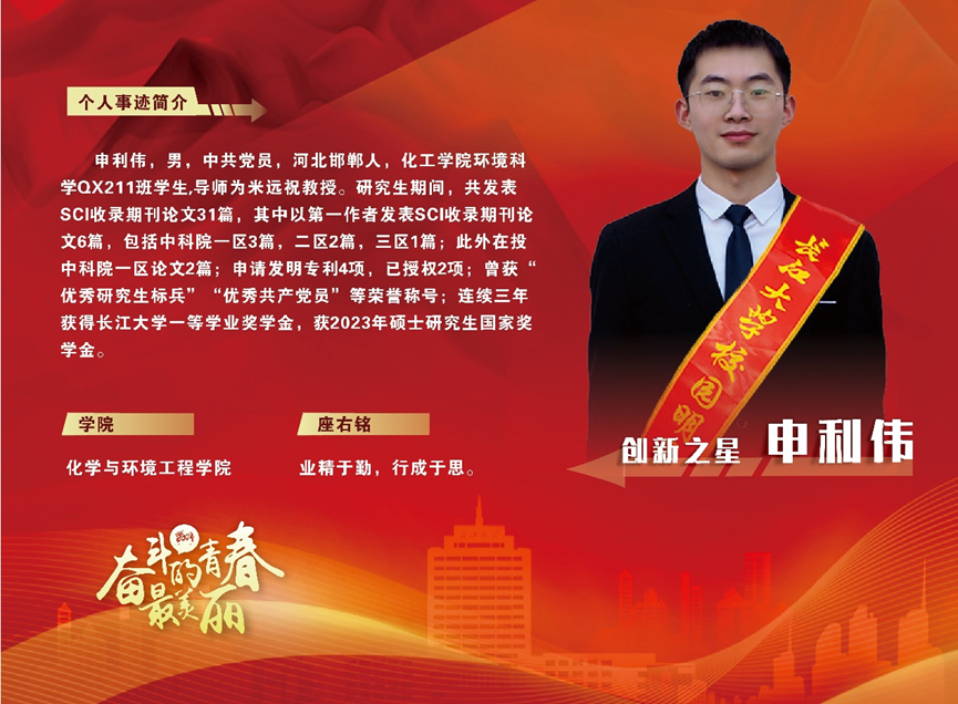 进入大学以来,申利伟始终把专业学习放在首位,他知道,只有牢固的专业知识才是今后工作的根本。在本科期间必修平均绩点4.09,名列专业第一,多次获得国家励志奖学金、三好学生等荣誉称号。在学习书本知识的同时,他还积极加入学院老师实验室,在导师和学长的帮助下开展大创项目,并获得了湖北省大学生化学化工学术报告会二等奖。大四时以专业第一保研至本校继续攻读硕士研究生,目前顺利通过了四六级考试,并连续三年获得了探花做爱