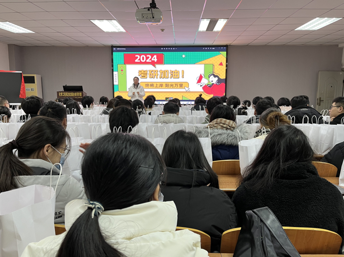教室里温馨而且热烈,党委书记王丽详细询问了大家的复习进度,询问有没有什么困难,发表了简短的讲话。她对同学们坚持学习表示赞赏,为同学们顽强拼搏表示感动。她鼓励同学们要有千军万马过独木桥的勇气,坚持到底,绝不轻言放弃。她祝愿同学们“所得皆所期,所求皆所愿,所行皆坦途”。党委副书记杨会军就诚信考试、考研注意事项等进行了教育和说明,同时嘱咐大家要保重身体,用最好的状态迎接考试的到来。