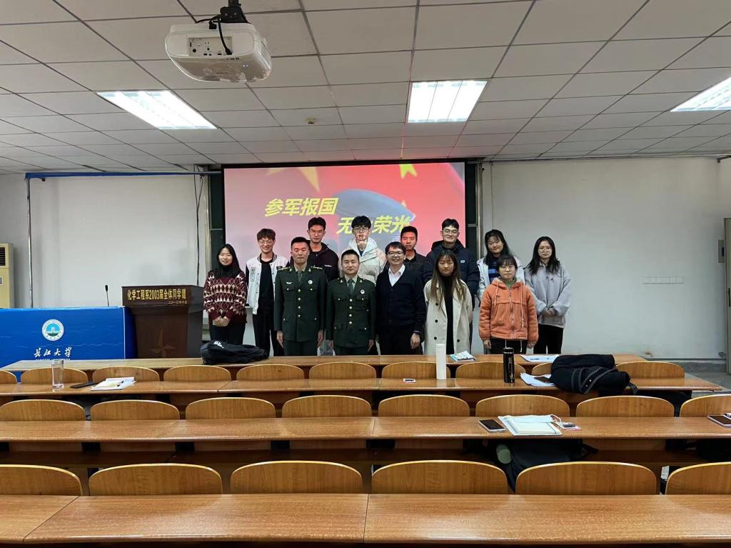 会议伊始,杨云锋老师介绍了本次征兵的主要日程安排、进站体检等相关信息。接下来,征兵宣讲员陶振龙、黄晨同学向各年级学生代表讲述自己的军旅生活、大学生征兵入伍的优惠政策,号召同学们积极响应国家政策,投身国防事业。