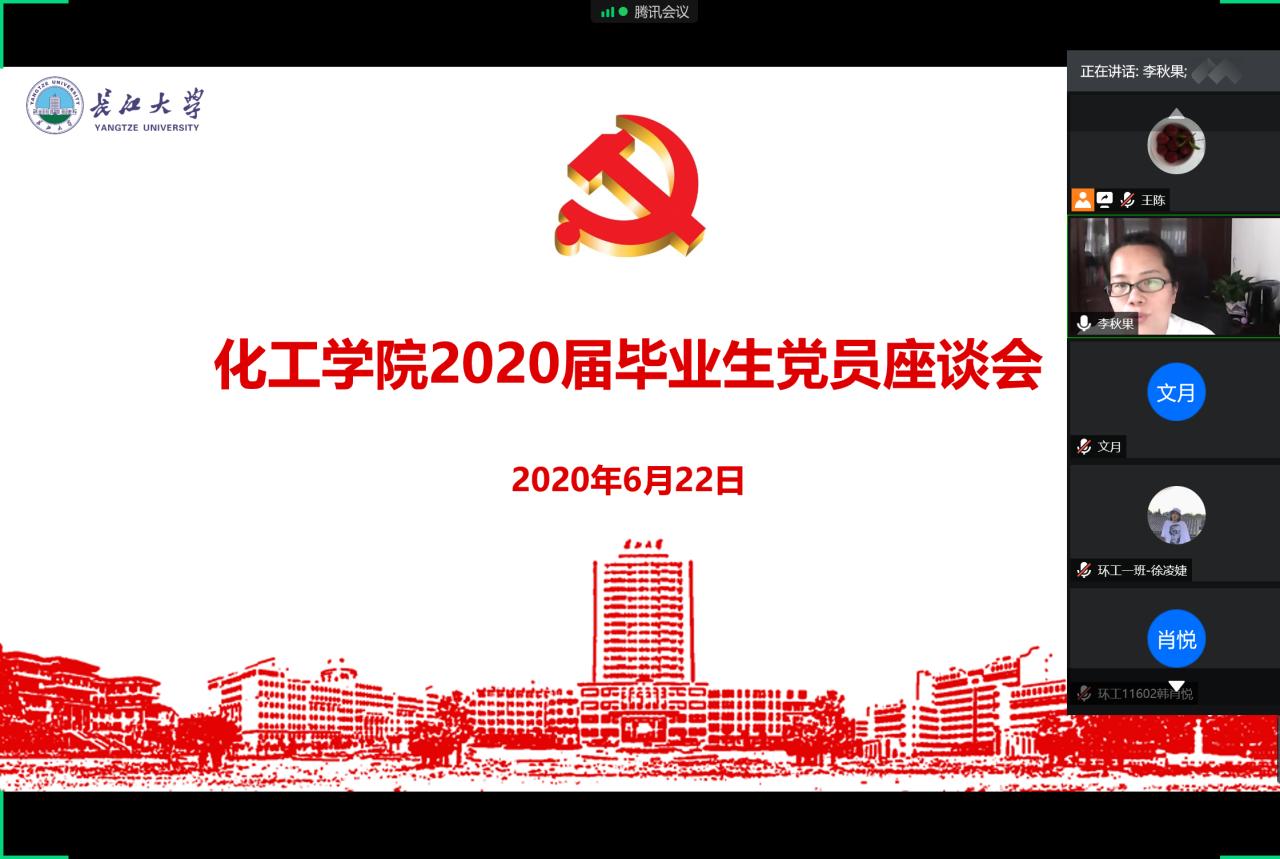 党委于腾讯会议召开2020届毕业生党员线上座谈会。学院党委书记刘桂生,副书记李秋果,党委委员、副院长黄河,党委委员、化工系主任石东坡,全体学生党支部书记及47名毕业生党员参加座谈。探花做爱