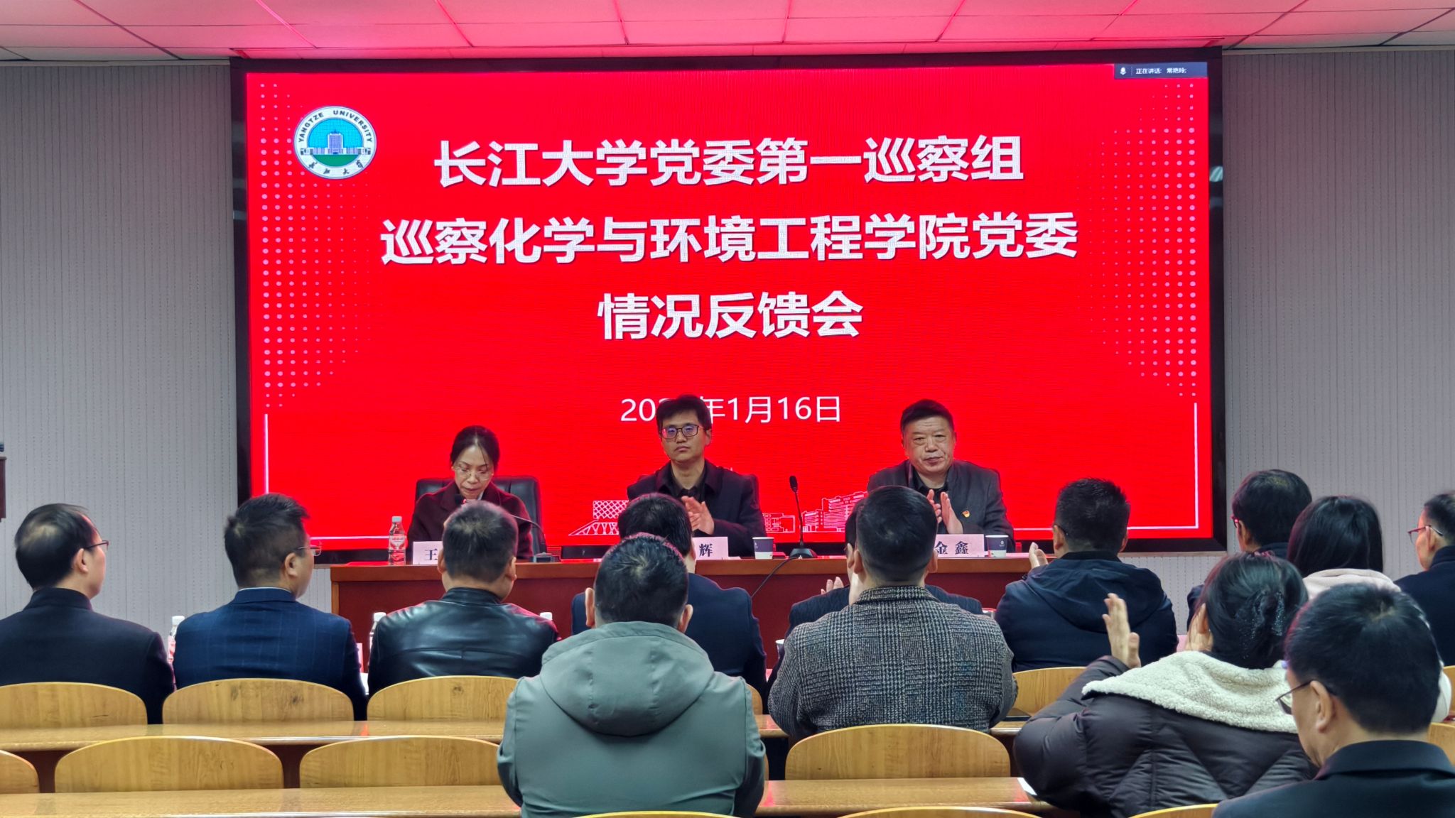 会上,巡察组组长金鑫代表巡察组通报了巡察情况,宣读了巡察反馈意见,并有针对性地提出五点整改建议:一是提高政治站位,持续强化理论武装,推动学用结合;二是加强事业统筹谋划,紧密对接国家“双碳”战略与学校“双一流”建设,着力打造学科特色优势;三是压实全面从严治党主体责任,推进党风廉政建设与业务工作同谋划、同部署、同落实;四是规范决策程序,提升议事决策效率和科学化水平;五是夯实基层党建基础,切实发挥党支部战斗堡垒作用。