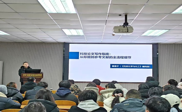 1月19日下午,西南化工研究设计院信息中心副主任陈曲、责任编辑雷鑫宇受邀在东校区14号教学楼北201开展学术交流活动,为师生带来高质量论文投稿与科技论文写作专项指导活动由学院副院长肖围教授主持,部分青年教师、学院研究生参加了此次活动。
