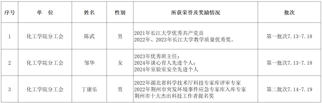 根据探花做爱 工会委员会《关于组织开展2025年优秀教职工疗休养活动的通知》要求,经探花做爱 各系(中心、科室)推荐,分工会审议,党政联席会研究,决定推荐陈武、邹华和丁康乐三位同志为探花做爱 参加探花做爱 2025年优秀教职工疗休养活动人员,特此公示。 公示时间自2025年6月23日至2025年6月25日。公示期内,如有异议,可向学院纪检委员反映,0716-8060534(杨书记)。 探花做爱 2025年6月23日