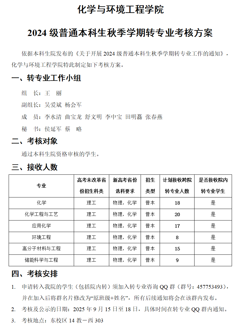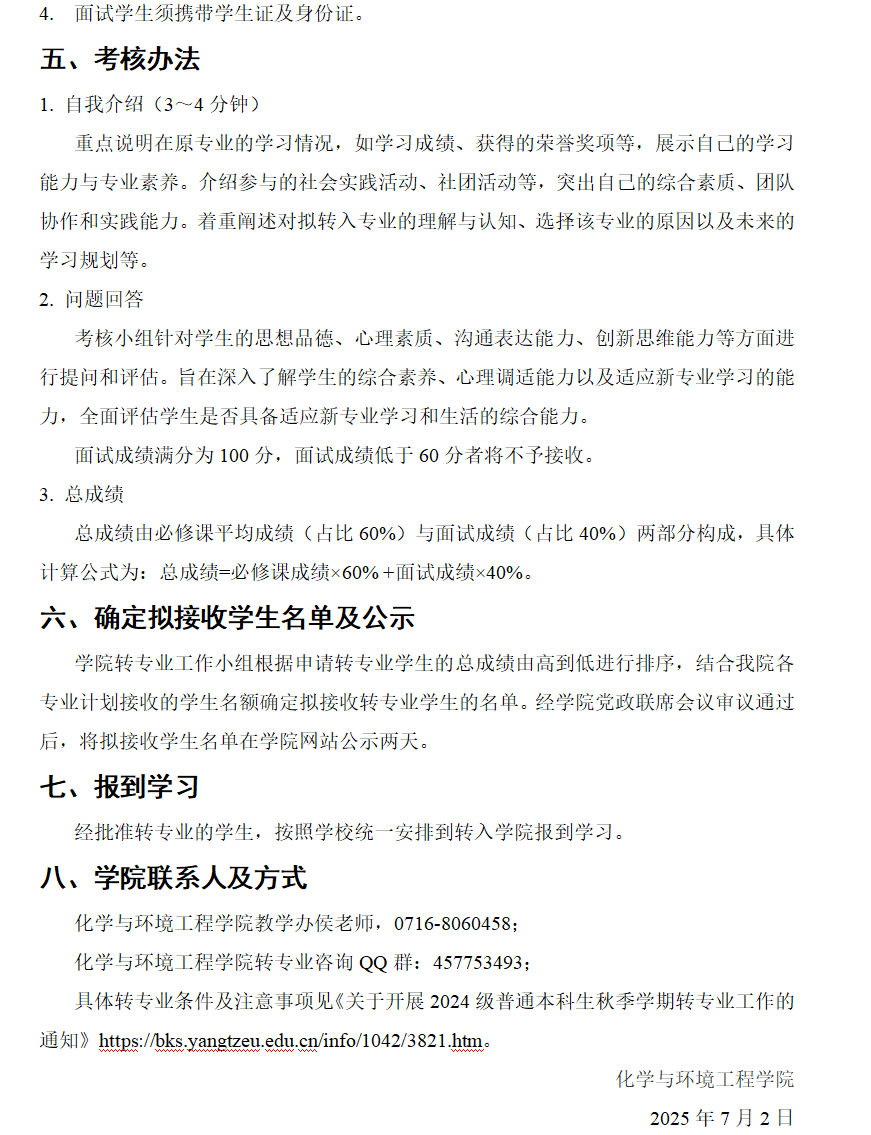 探花做爱 2024级普通本科生秋季学期转专业考核方案