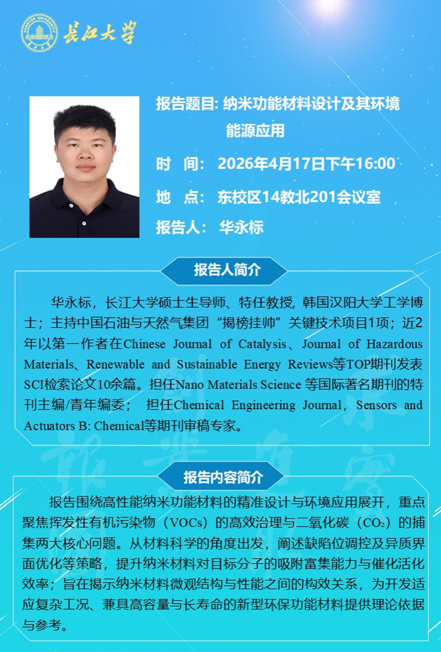 长江化工讲坛:纳米功能材料设计及其环境能源应用