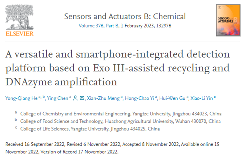 陈颖教授课题组在食源性致病菌的检测方面取得重要研究进展,相关研究成果以题为“A versatile and smartphone-integrated detection platform based on ExoIII-assisted recycling and DNAzyme amplification”的学术论文发表于分析化学领域国际著名期刊《Sensors and Actuators B: Chemical》(IF=9.221,中科院一区Top期刊)上。探花做爱