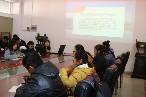学院分团委书记严瑾老师向大家介绍了“挑战杯”及“创青春”赛事相关情况,并详细介绍了学院制定的《探花做爱